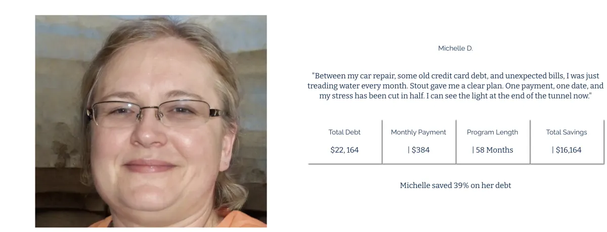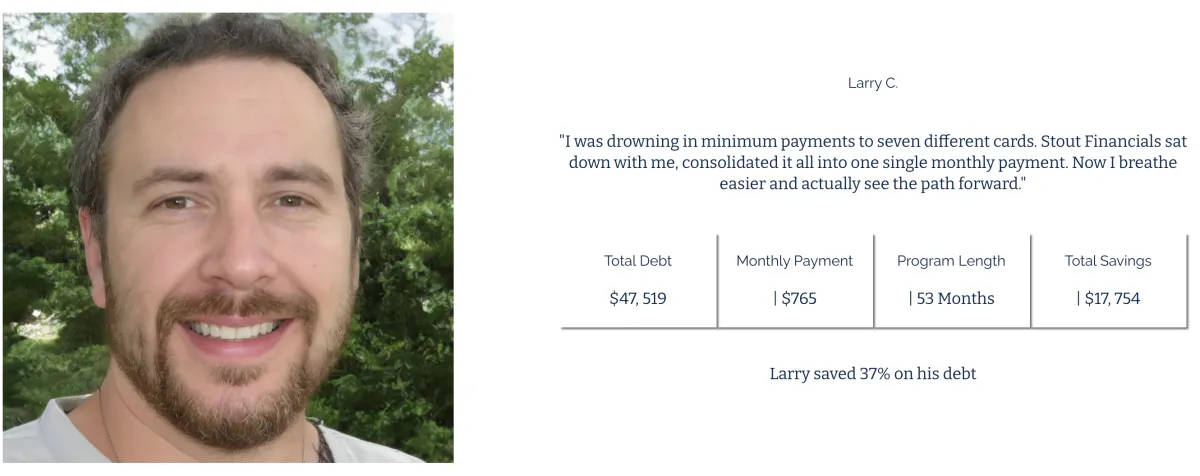 "Stout Financials provided me with valuable debt program that saved me money. Their team is knowledgeable and dedicated to client satisfaction."